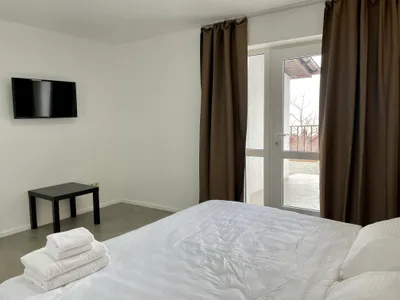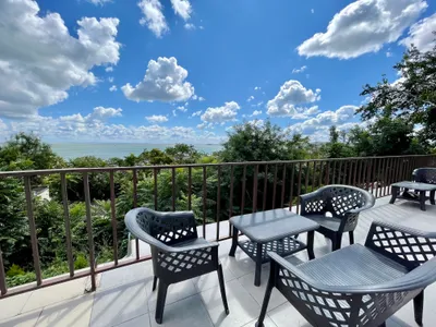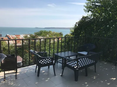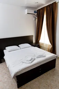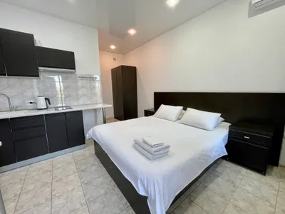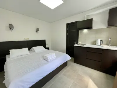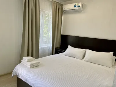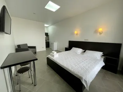 Номера с отдельным входом и террасой с видом на море и Крымский мост. Оборудованы мини кухней, кондиционером, смарт-телевизором с плоским экраном.
